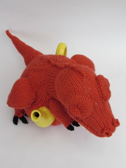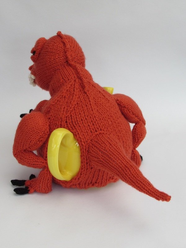 This product is the knitting pattern only to make your own Tyrannosaurus Rex tea cosy.