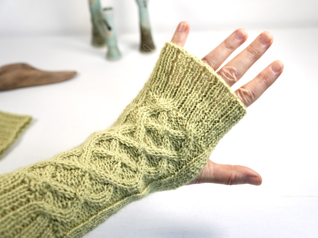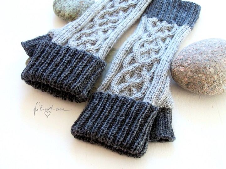 HIGHLAND MITTS - The fingerless gloves for him and her!! The pattern of these fingerless gloves is a homage to the Scottish Highlands, green-covered mountains, half-ruined castles and is of course also inspired by the "Outlander Saga". Cuddly and warm, the arm warmers still offer freedom of the fingers for all sorts of work and when it gets too cold for the fingers, the double-layered cuff can simply be turned over forward! A Celtic Cable Stitch is flanked by a simple Rib Stitch, so, the arm warmers fits perfectly to the arms. 2 versions are described: