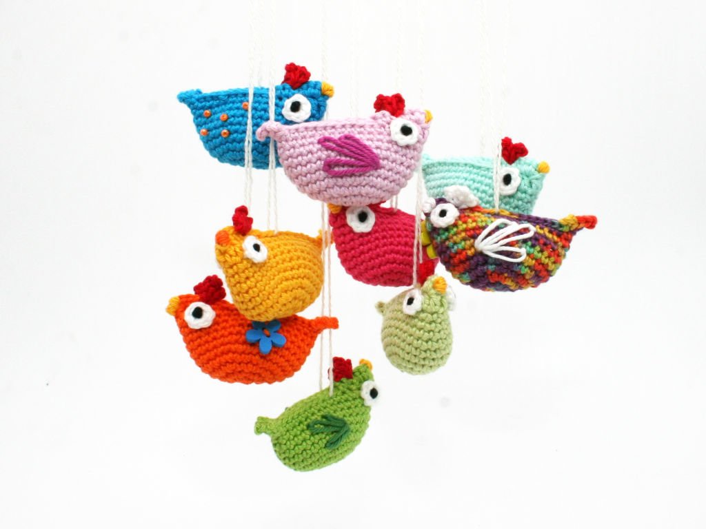 The pattern is easy to remember so that you‘ll quickly know it by heart. Like that the chickens will be hanging on your easter twig, key-chain, car mirror… in no time at all.