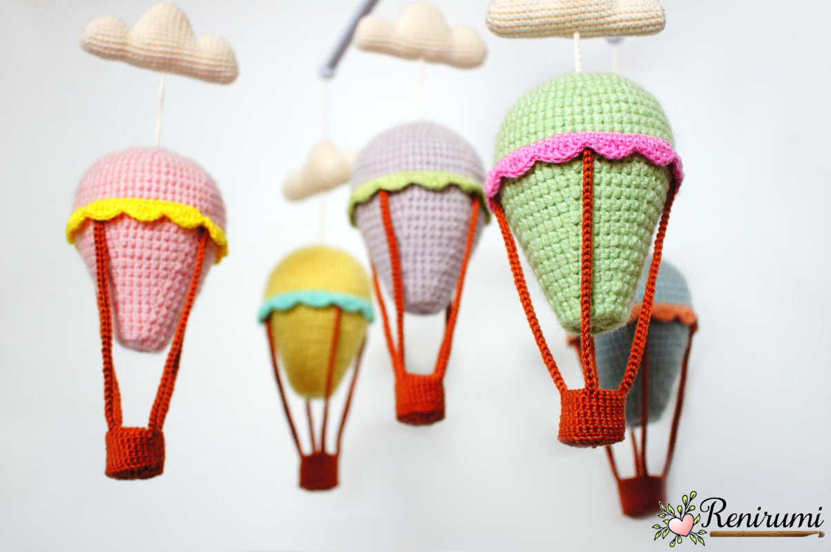Crochet pattern crib mobile balloons and clouds