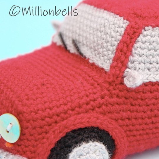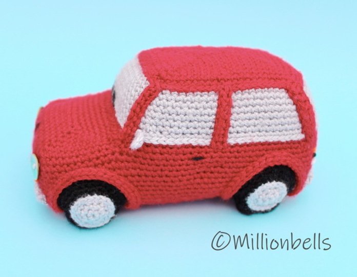 This pattern describes in US terminology how to crochet a lovely classic Mini car as shown in pictures. Finished size will be approx. 7” (18 cm) long, 3.5” (9 cm) tall, 4” (10 cm) wide, crocheted using acrylic yarn (8 ply / DK), with hook size E (3.5 mm).