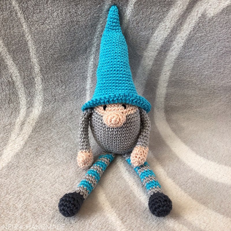 Sitzend vom Po bis zur Mützenspitze ist der Wichtel ca. 17cm groß. Die größe kann allerdings abweichen wenn andere Wolle verwendet wird.