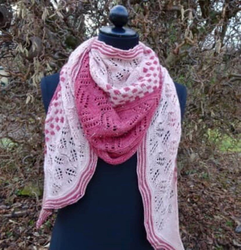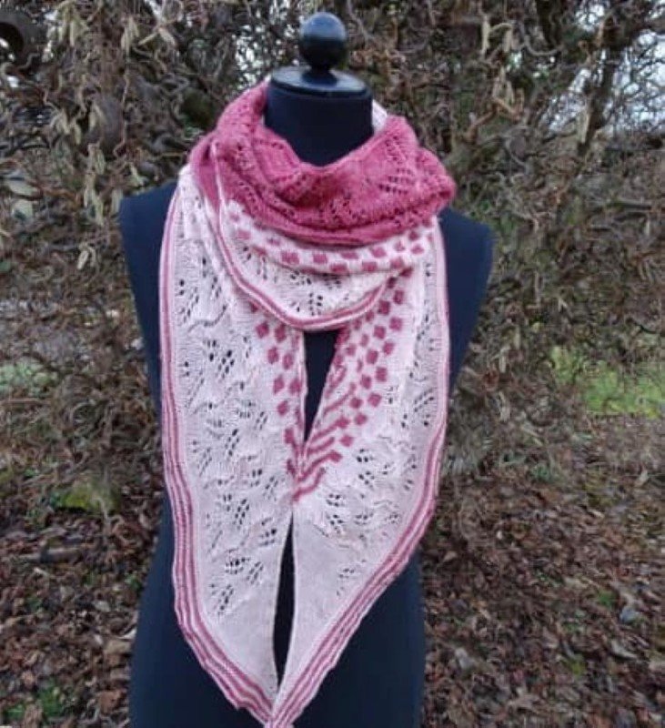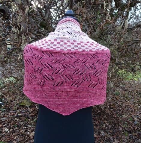 Das Dreieckstuch wird von der unteren Spitze in die Breite nach oben gestrickt.