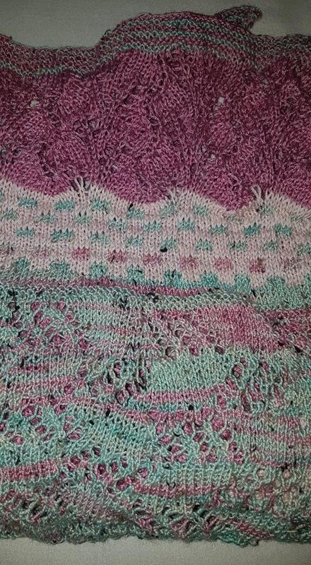 In verschiedenen Zwischenreihen werden noch mehr Zunahmen gestrickt damit es relativ flach bleibt.