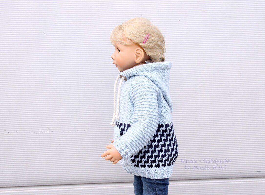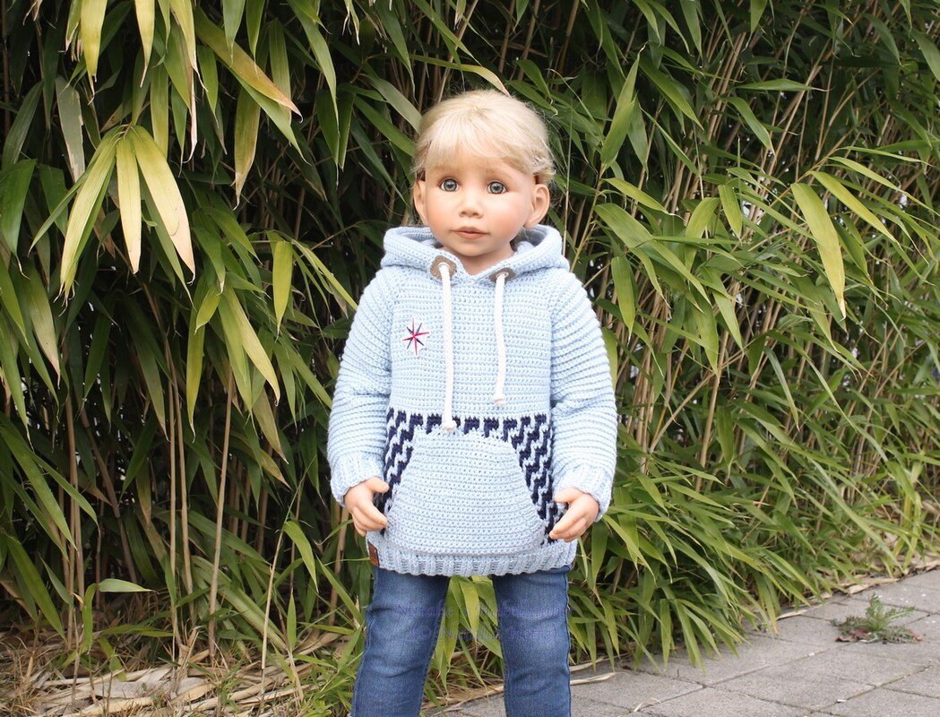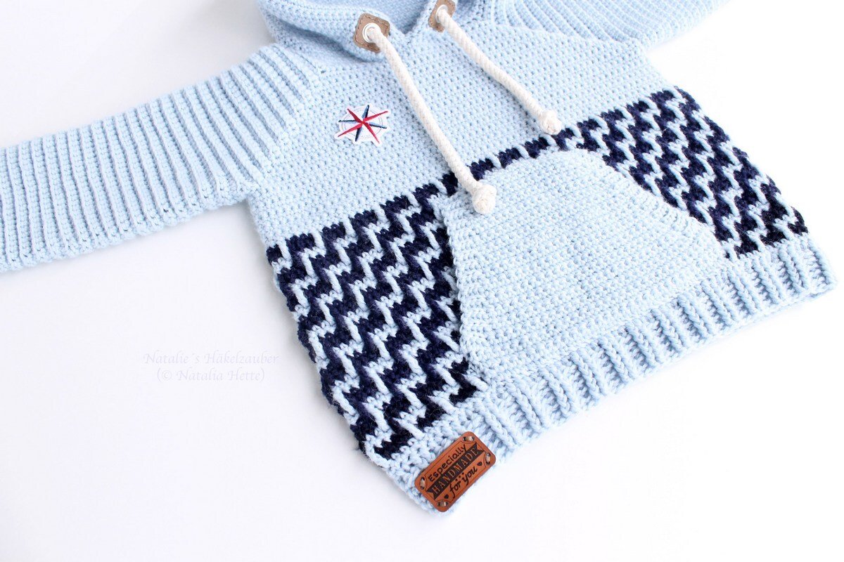 You already have some knowledge of crochet (sc, ch, crochet in rounds and rows, fpdc/bpdc) and would like to crochet something interesting for you and your child? Then this crochet tutorial is just for you. With this tutorial you can quickly and easily crochet a hoodie that has a playful, two-colour 3D pattern on the bottom and a relief pattern on the sleeves. This hoodie is great for sports activities as well as for walks. This jumper can be crocheted for both winter and summer (depending on the wool).