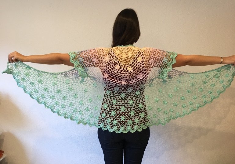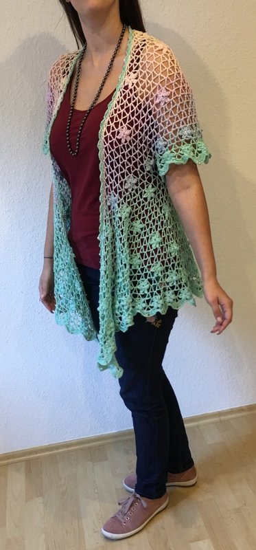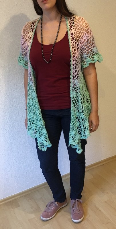 Weiterhin musst du Doppelstäbchen, Stäbchen, halbe Stäbchen, feste Maschen, Kettmaschen und Luftmaschen beherrschen, um diese Jacke häkeln zu können.