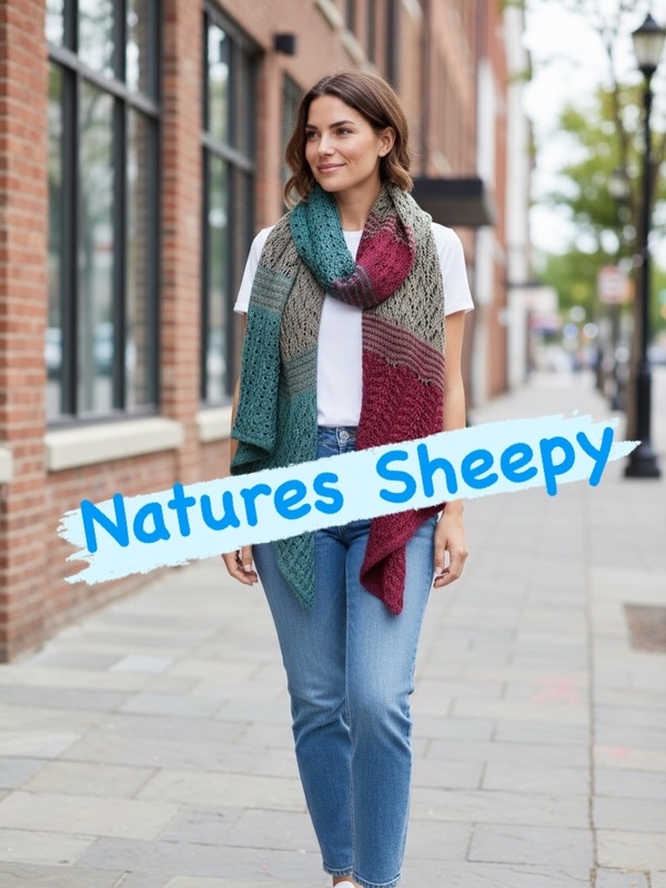 Angelika von Rübezahl Spinnereien bat mich ein Tuch für ungefärbte Schurwolle zu designen, um zu zeigen das auch damit wundervolle Sachen gestrickt werden können.
