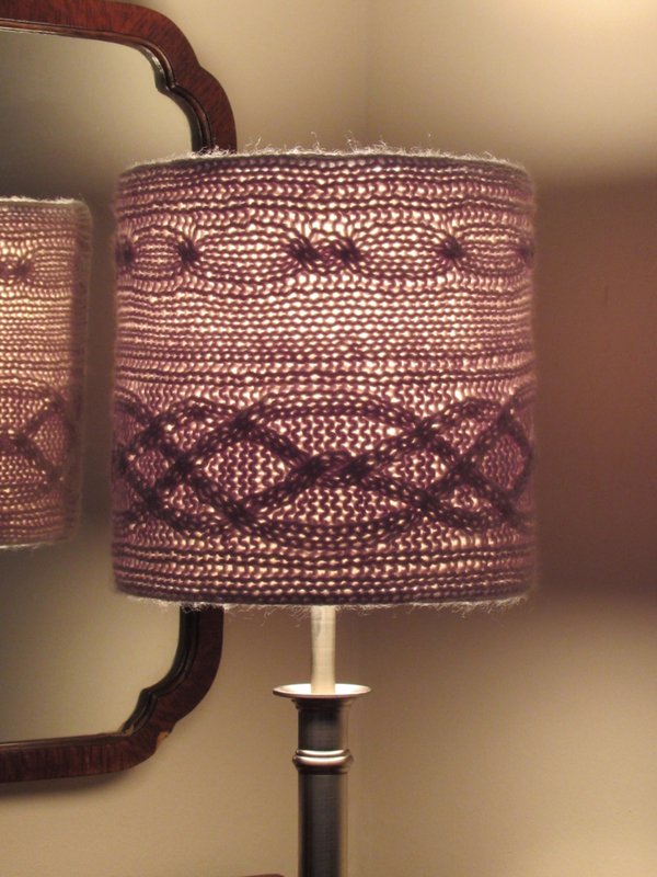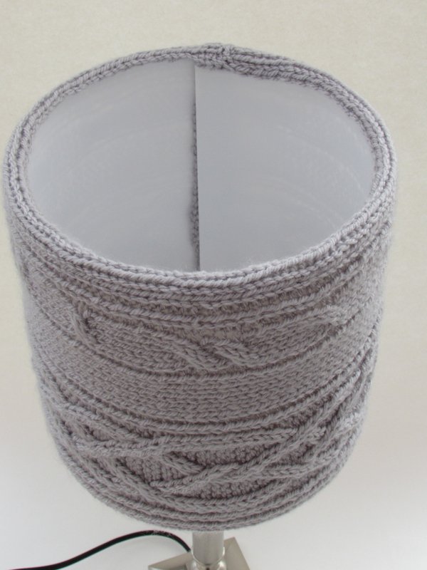 Usually cables are knitted from the bottom upwards; but the lampshade has the cable so that it travels around the lampshade, and it has the effect of leading the eye.