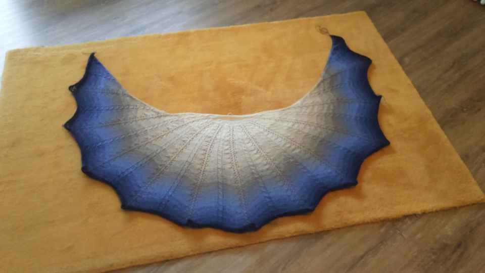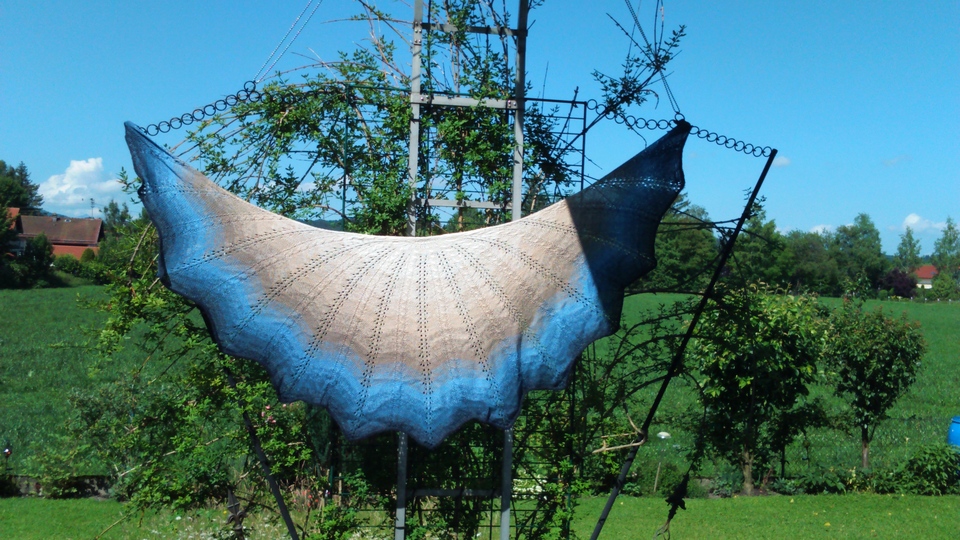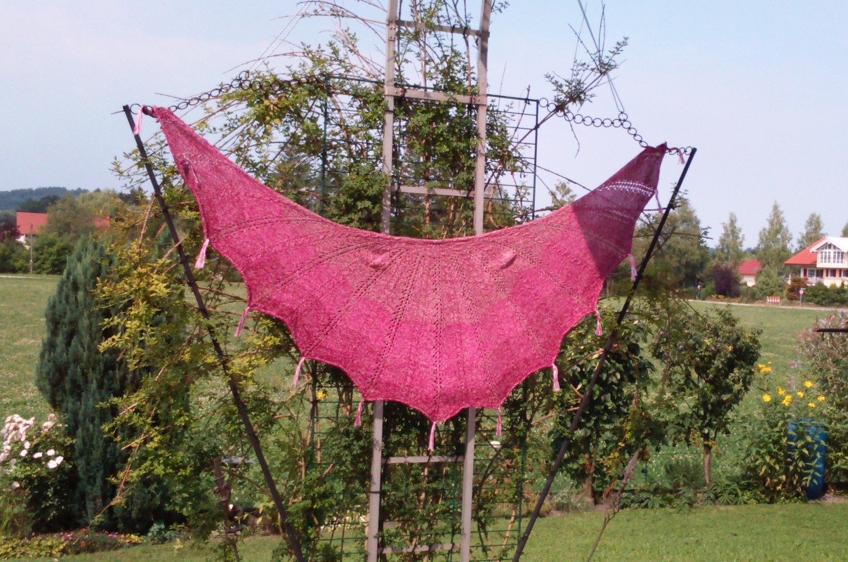 The name finder for this shawl is my 4-year-old granddaughter, who said that looks like a bat. This one is the „grown up“ version and and is called accordingly “Fledermaus“ (bat)