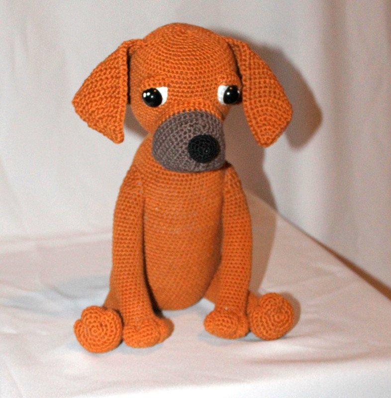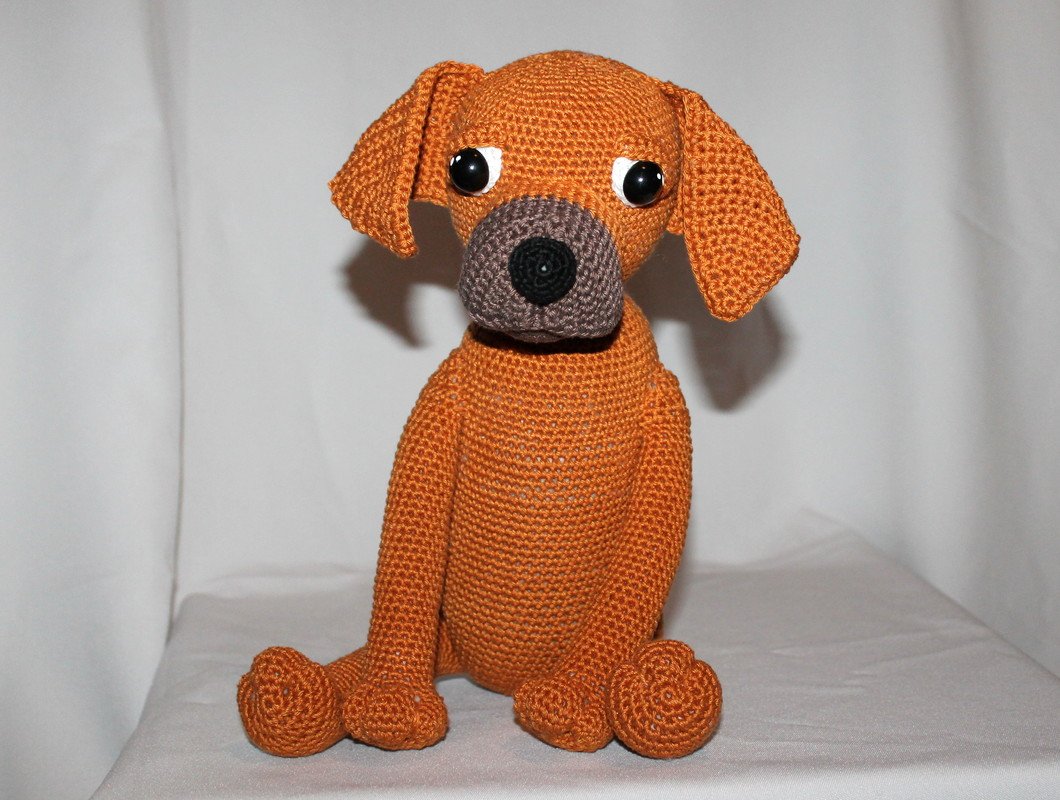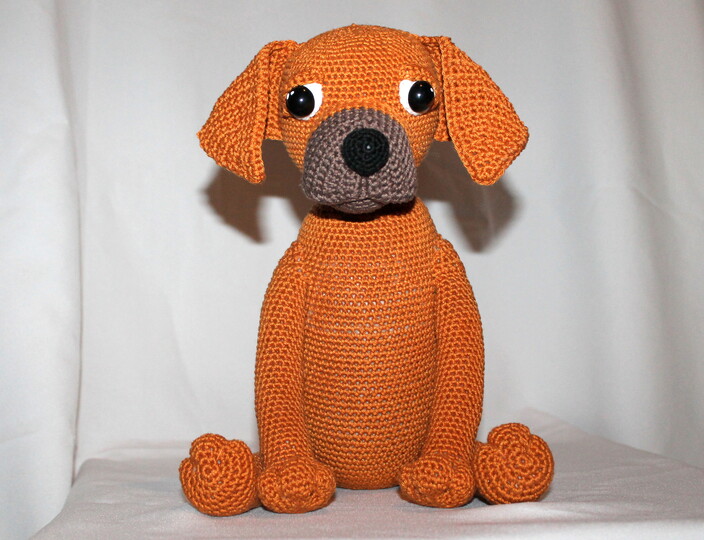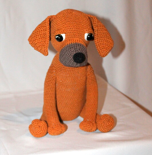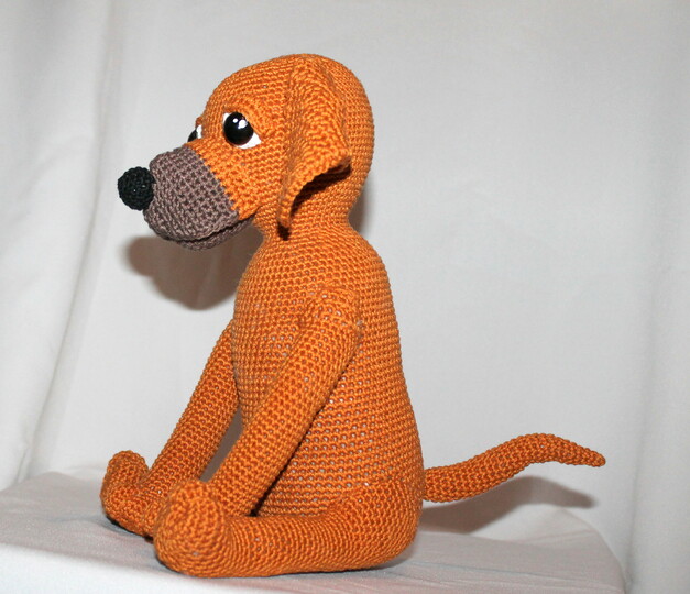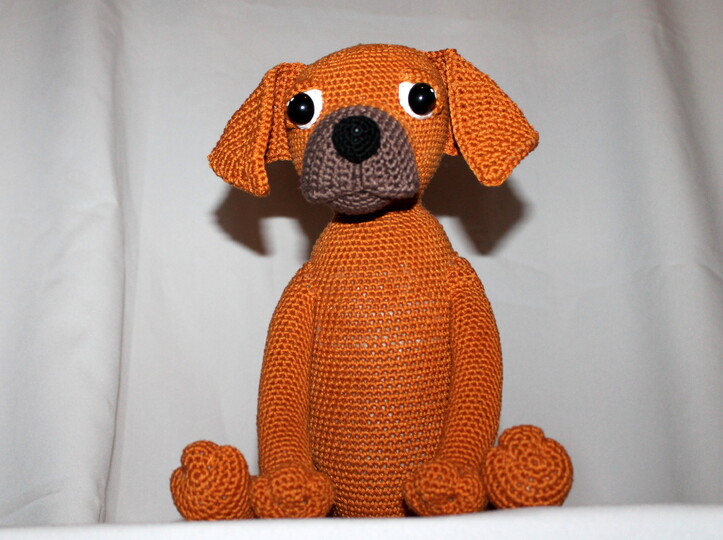 The crochet dog may be sold, if you add the suitable link and a note: "Crochet after an instruction of masche-fuer-masche!".