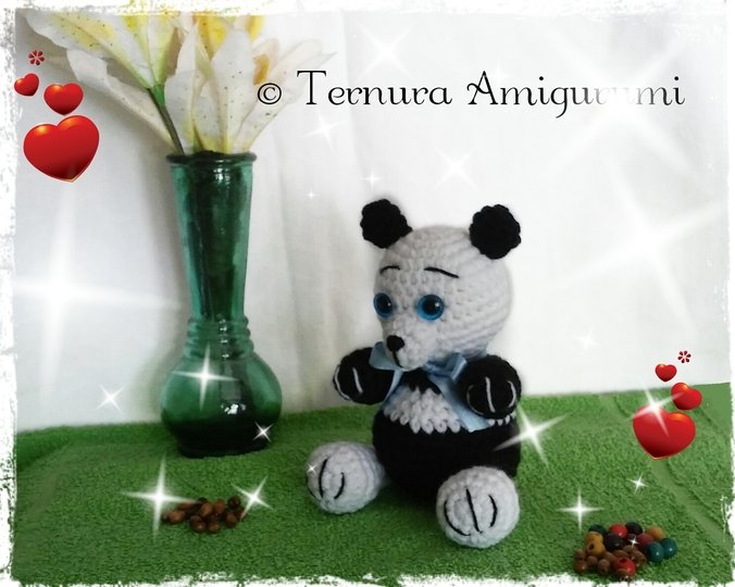 This panda needs your love! It is very beautiful and is perfect for decorating and giving away! Children love to have him with them and to play with him. Do it! You will love it !! The finished sizes are approx. 14 cm. Do not stay back without doing yours!