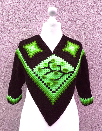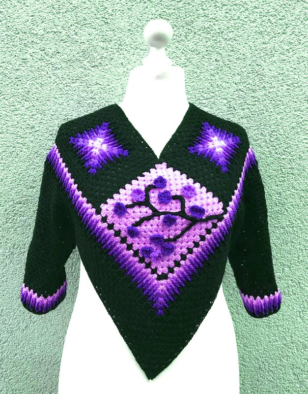 der fertige Poncho wiegt 380gr und passt für die Größe 40-52