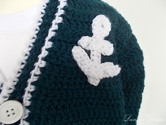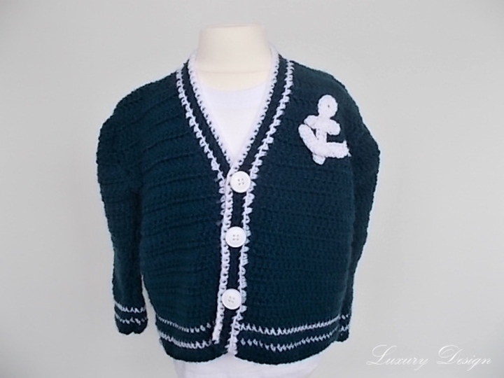 Eine süße und moderne Kinderjacke, nicht nur für kleine Segler, auch die Mädchen dürften diese Jacke toll finden. Vieleicht in weiß mit rot abgesetzt. Der extra gehäkelte und selbstverständlich auch in der Anleitung enthaltene Anker gibt der Jacke den maritimen Look. Hübsch zur Jeans aber auch mal ganz elegant zur weißen Hose.