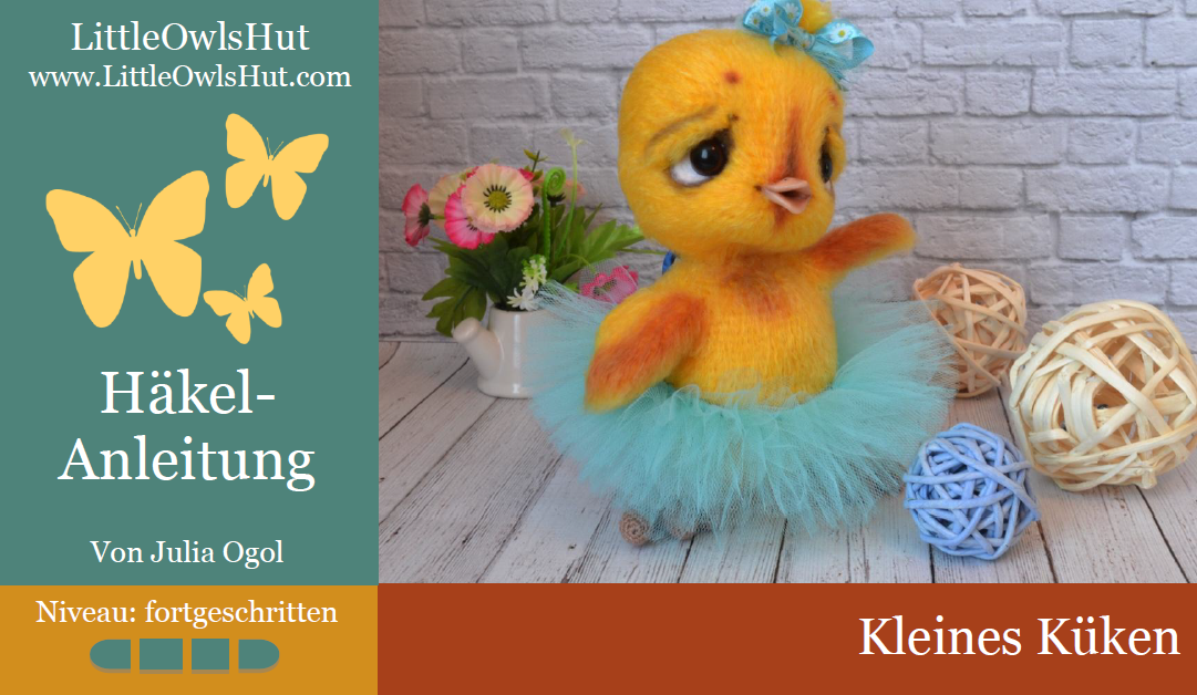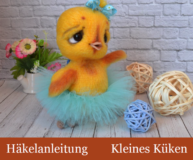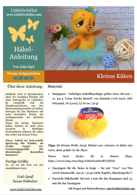 Mit dem von mir empfohlenen Garn ist das Küken ca. 25 cm groß.