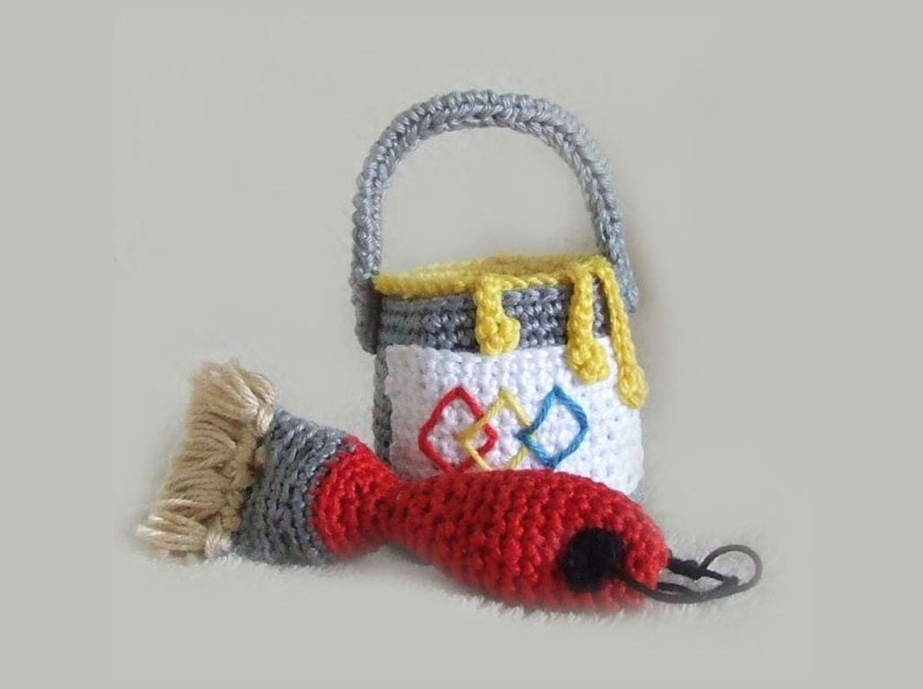 2 mm-crochet hook, Phildar Cotton : 3 x skincolor (= Phildar cotton poudre), 1 x white, 1 x blue, 1 x grey, 1 x red, 1 x black, little bit beige, little bit yellow