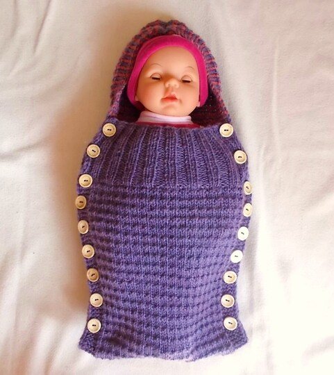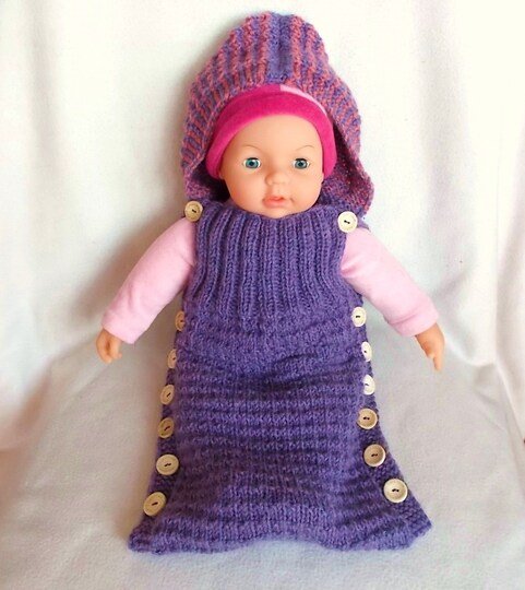 Auch für einen Teddy oder Neugeborene kann dieser Schlafsack gestrickt werden. Er lässt sich in der Länge und auch in der Breite ganz einfach anpassen.