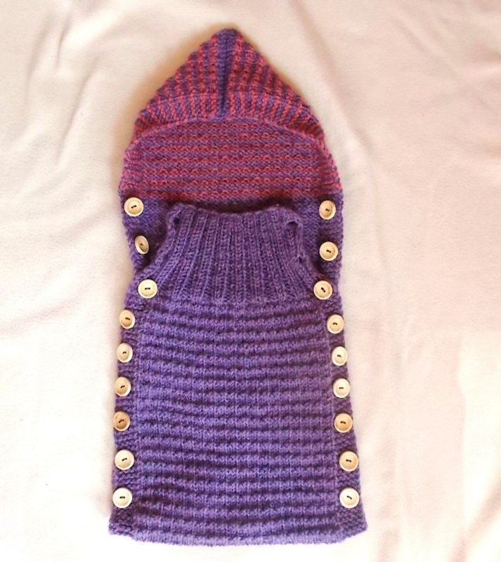 Die Maße des Schlafsacks lassen sich auch für andere Größen abwandeln. Die einfachste Möglichkeit ist, dickere oder dünnere Nadeln zu verwenden oder eine andere Wollstärke. Die Breite und auch die Länge des Schlafsacks lassen sich ganz einfach erweitern durch mehr Maschen bzw. Reihen. Die Maschen zu Anfang sollten dann durch 4 teilbar sein, damit das Bündchenmuster passt.