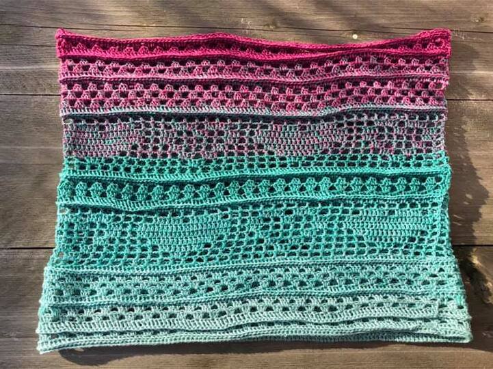 Me and my testers used gradient yarn cakes from "LittleFavorites by Rea" in 1000m 3ply and a 4mm hook