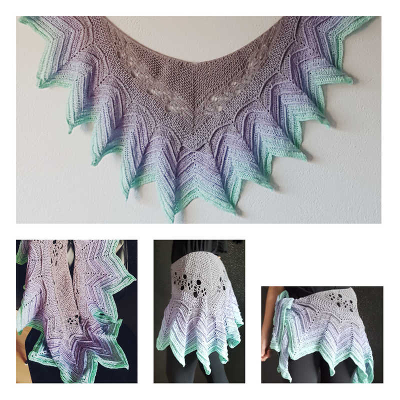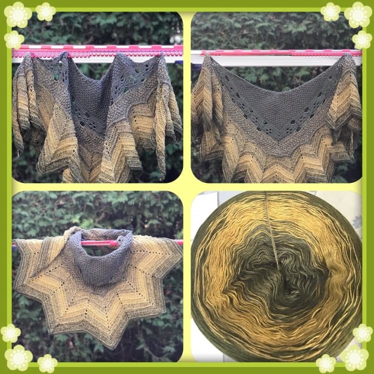Das Tuch bekommt mit 750m Verlaufsgarn eine Größe von ca 45,5cm*157cm