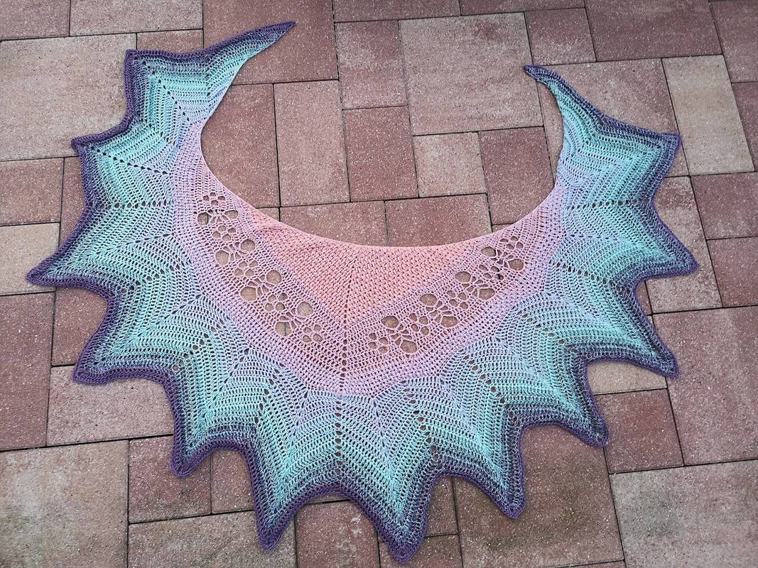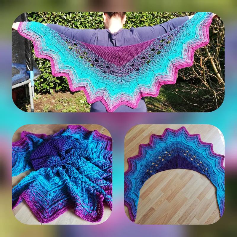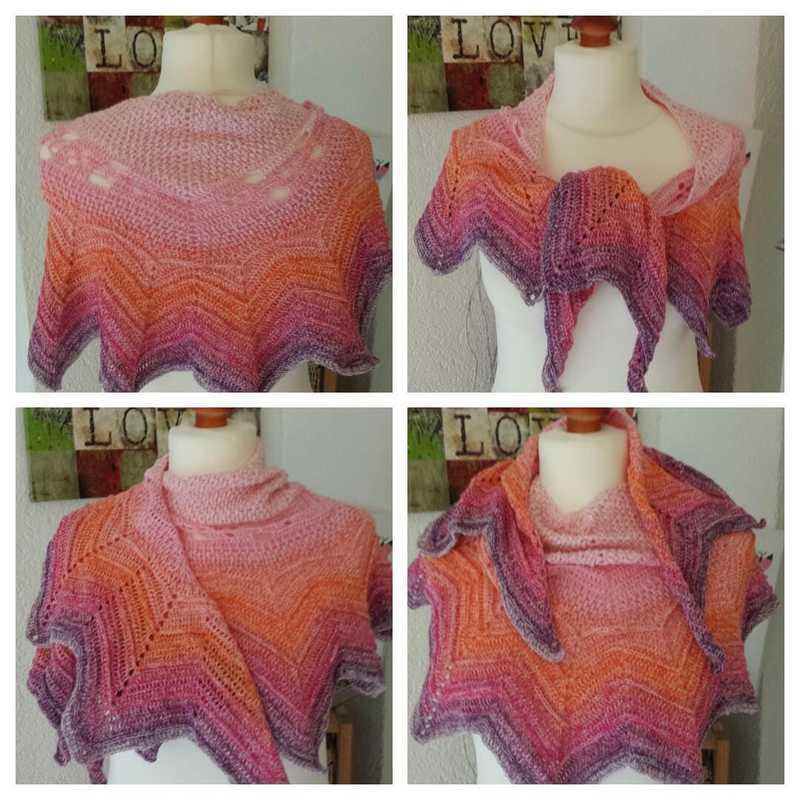 Ein Tuch der anderen Art. Erst Dreieckig dann zackig :-), es ist eher breit und nicht tief. Super geeinget als Halstuch oder Hüfttuch.