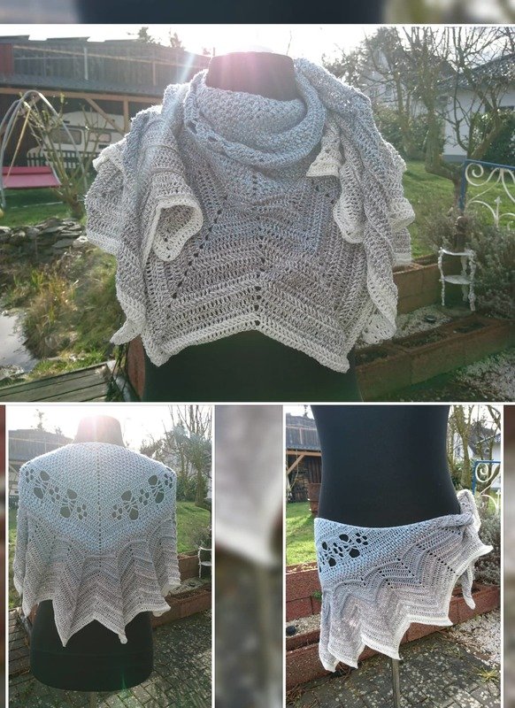 Das Tuch bekommt 1000m Verlaufsgarn eine Größe von ca 60cm*185cm