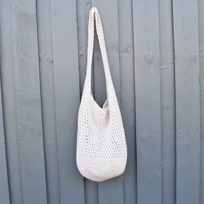 Make yourself a dazzling summer shopper bag. This is a perfect everyday bag for your trips to the market or to the beach. The bag is worked in Go Handmades Cosy yarn. The bag is worked in a simple, but pretty pattern. Have fun!