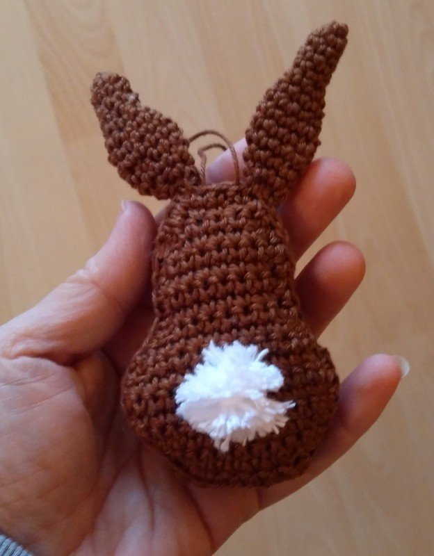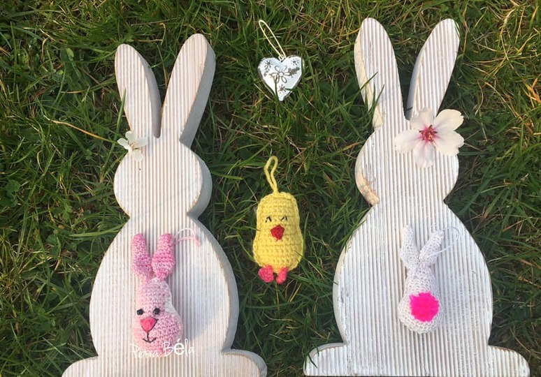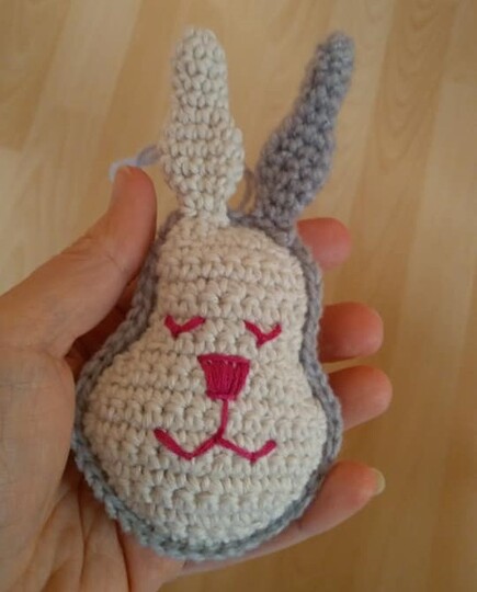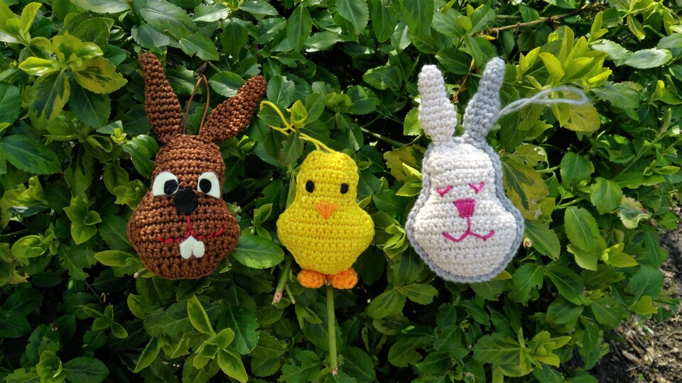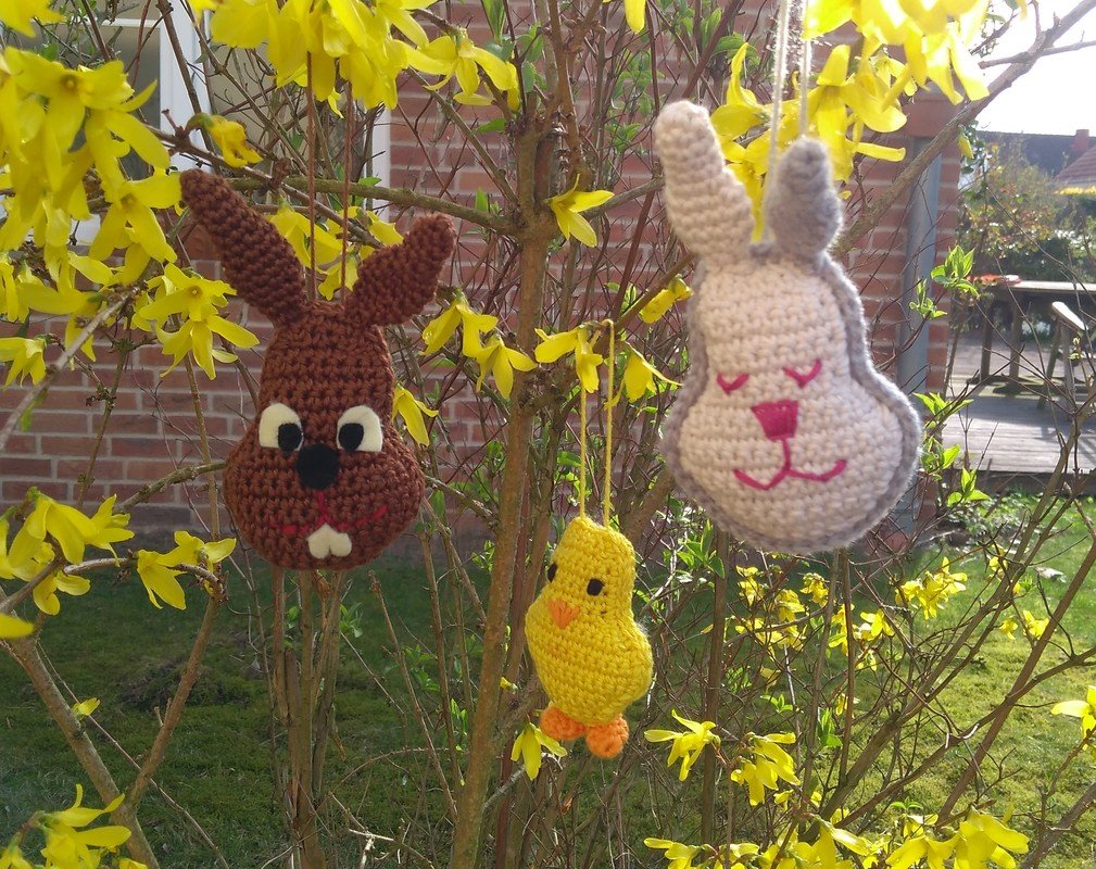 Je nachdem ob man die Teile zusammennäht oder zusammenhäkelt, evtl. sogar mit einer Kontrastfarbe, sieht das Häschen unterschiedlich aus. Durch Variationen im Gesicht, ob mit Filz, Perlen oder bestickt, entstehen viele unterschiedliche Häschen oder Küken.