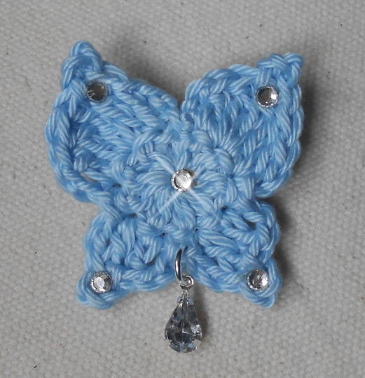 Die Schmetterlinge werden ca. 3 cm groß. Bei anderer Garn- oder Nadelstärke natürlich größer bzw. kleiner.