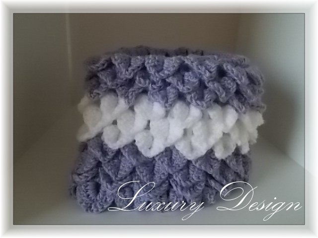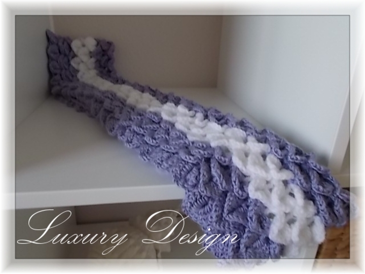 Baumwolle oder Polyacryl mit einer LL von 140m für die Nadelstärke 3,5 sollte verwendet werden. Insgesamt werden bei einer Größe von 20 x 120 cm, 350gr. Wolle gebraucht.