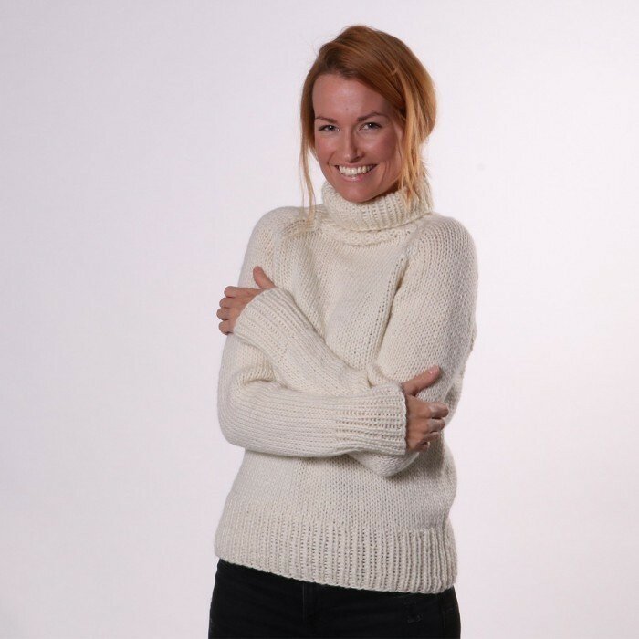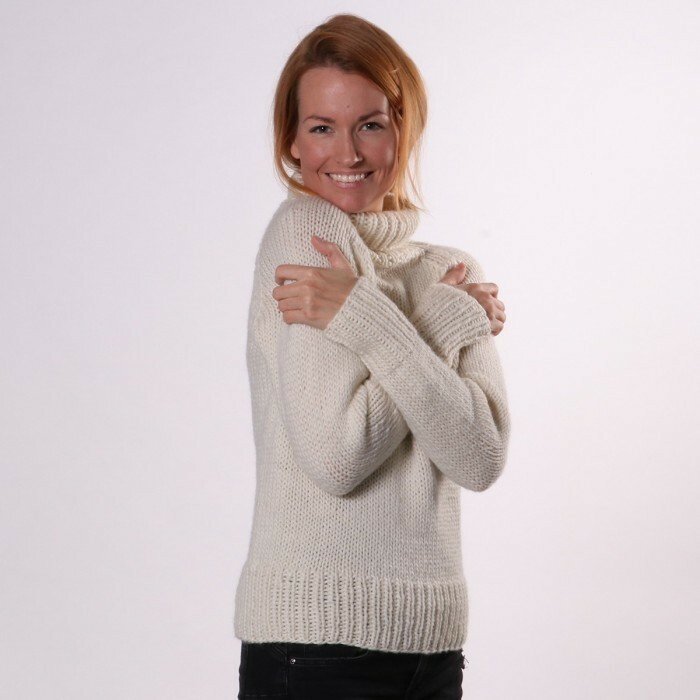 A fabulous, thick sweater in Snowstorm. It is classic in its simple look with wide rib edges and turtle neck.