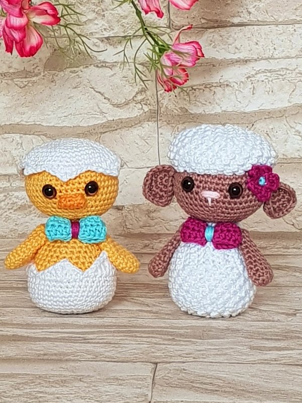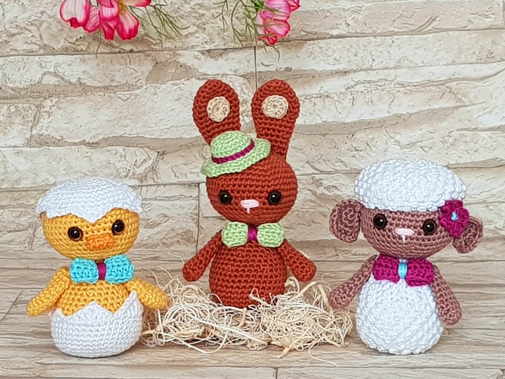 This cute little gang is so much looking forward to the Easter holidays and simply must be part of every Easter basket: the Cheeky Chicklet, the Dressy Bunny and the Lovely Lamb.
