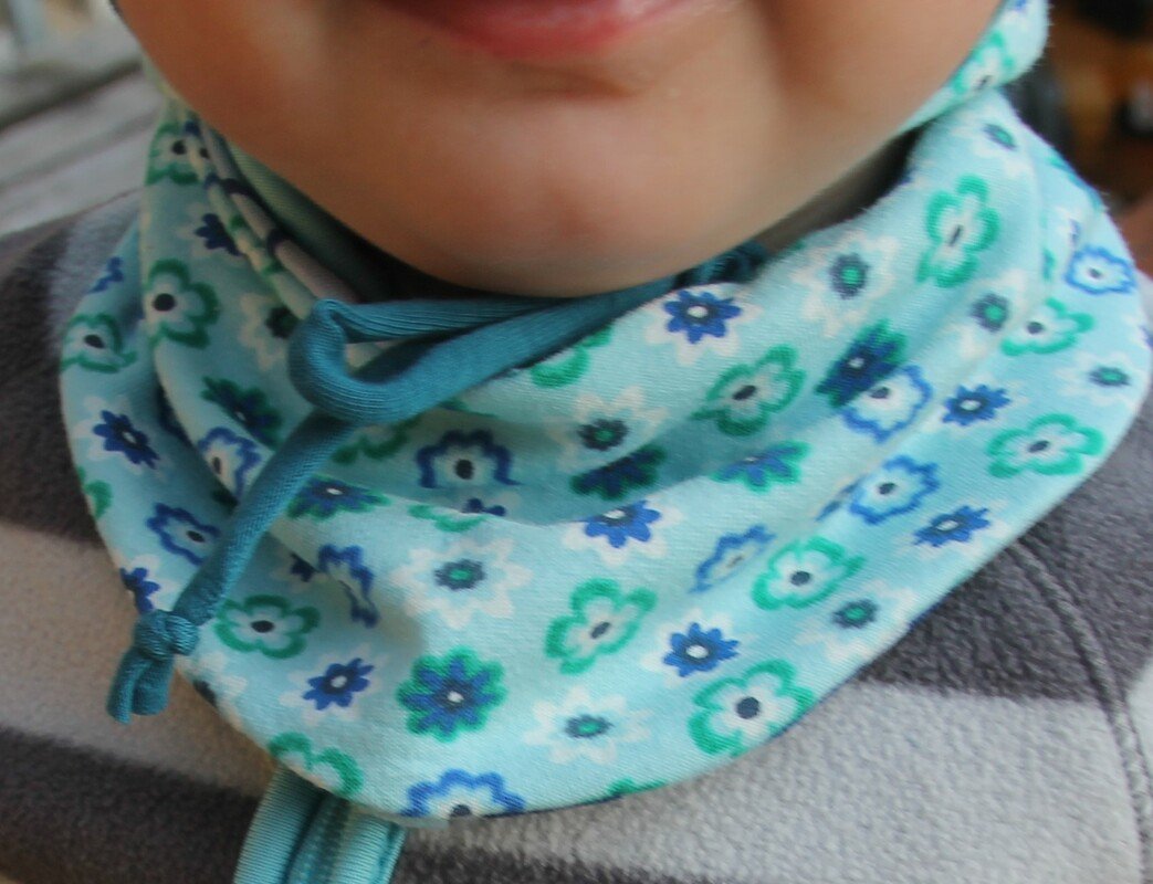 bei dem Halstuch sind 3 Größen und 2 Varianten im E-Book, mit einem längeren Klettverschluss auf einer Seite oder 2 Druckknöpfen wächst das Tuch ein wenig mit, ist größenverstellbar und passt viele Jahre.