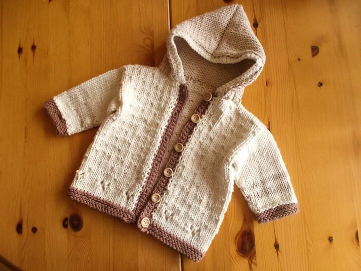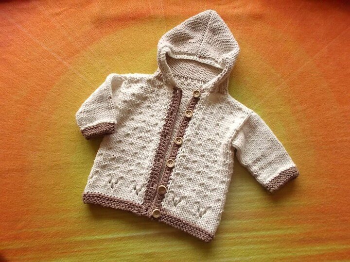 Die Babyjacke wird von unten nach oben ohne Nähte gestrickt.