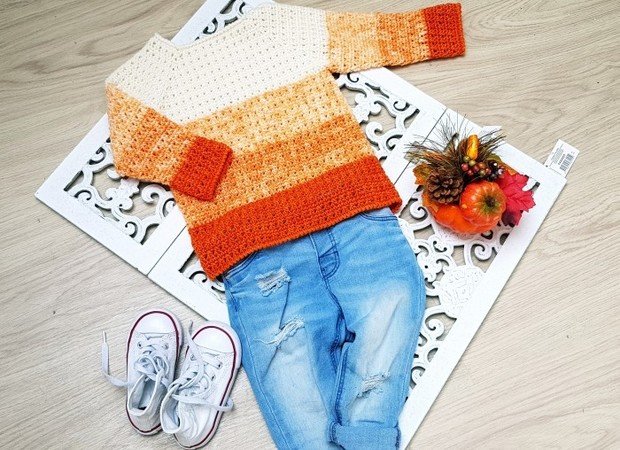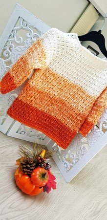 The Pumpkin Sweater is worked from top to bottom in Merino wool. This pattern is for sizes from 6 months up to 4-5 years and is written in US terms.