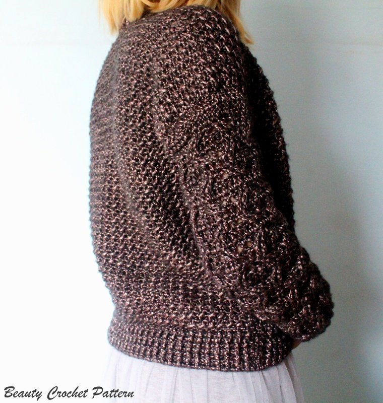"Rock & Roll Cardigan Pattern" is a crochet short open cardigan with fashion look. Sleeves with their texture resemble honeycomb.