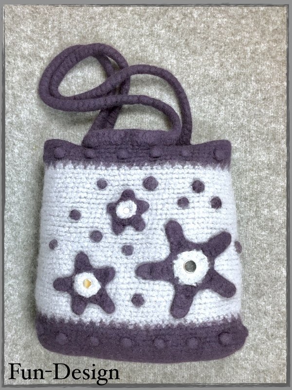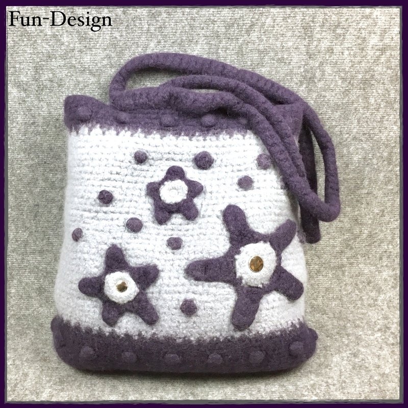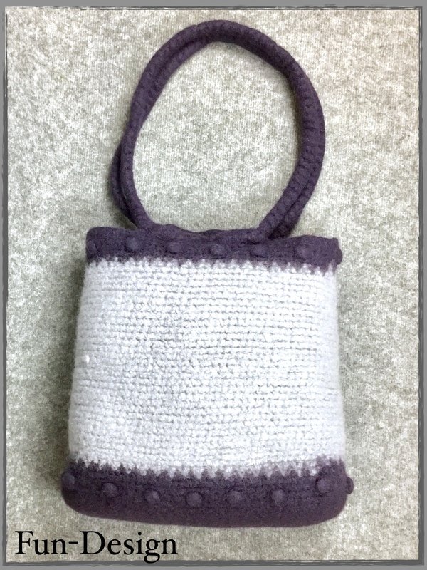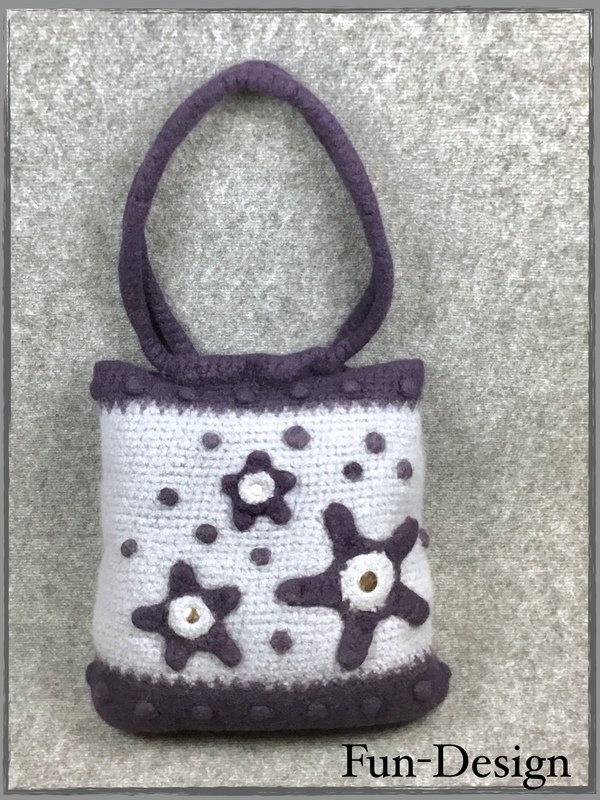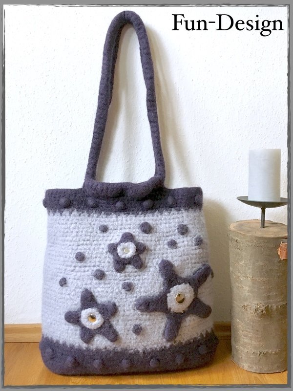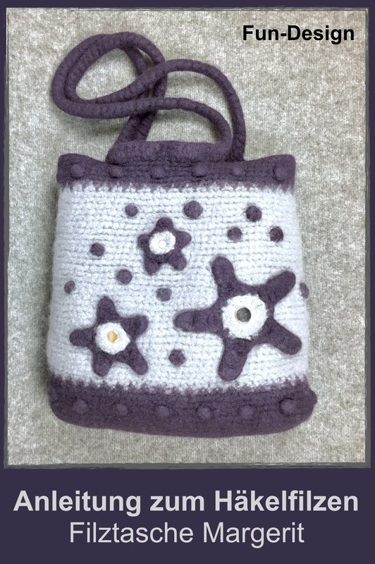 Diese modische Filztasche wird zuerst gehäkelt und dann in der Waschmaschine gefilzt.