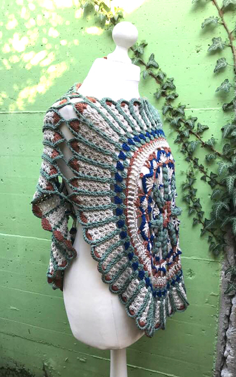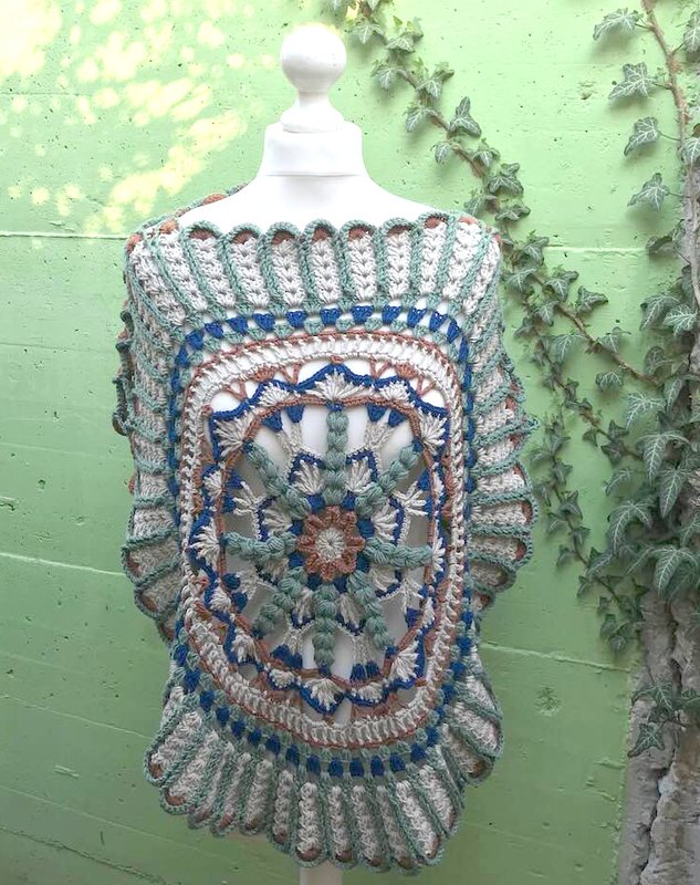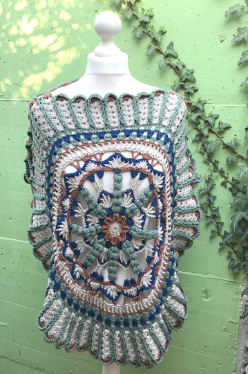 Der ausgefallene Poncho 700 ist ein herrliche Handarbeit...und sieht viel komplizierte aus, als er ist! Getragen ist er ein echtes Schmuckstück und mehr brauchst es dann auch nicht an Schmuck!