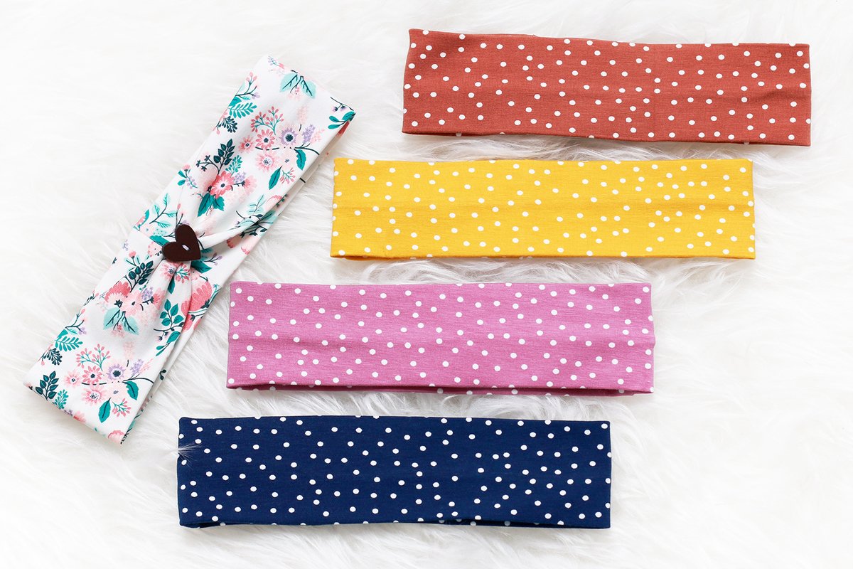 Haar- und Stirnbänder sind schick und können schnell genäht werden. Man kann sie vorne raffen und Knöpfe oder Labels anbringen. Sie sind ein super Mitbringsel. Das PDF beinhaltet eine ausführliche Anleitung mit Texten und Bildern sowie den beiden Schnittmustern.
