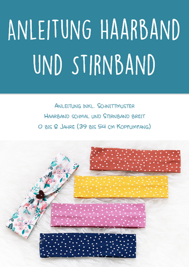 Das Schnittmuster geht von 0 bis 8 Jahren und ist in zwei Breiten (Haarband und Stirnband) verfügbar. Der Kopfumfang geht von 39 bis 54 cm.