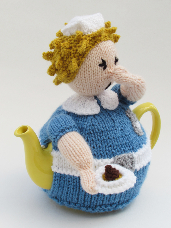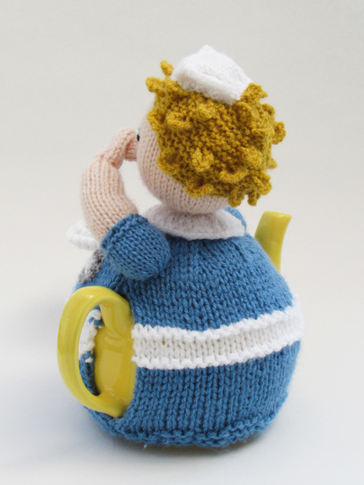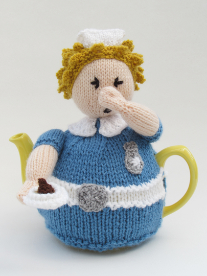 This product is the knitting pattern only; to knit your own Nurse tea cosy.