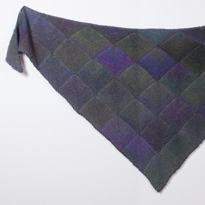 The shawl is knitted in the domino pattern, which creates an incredibly beautiful result.