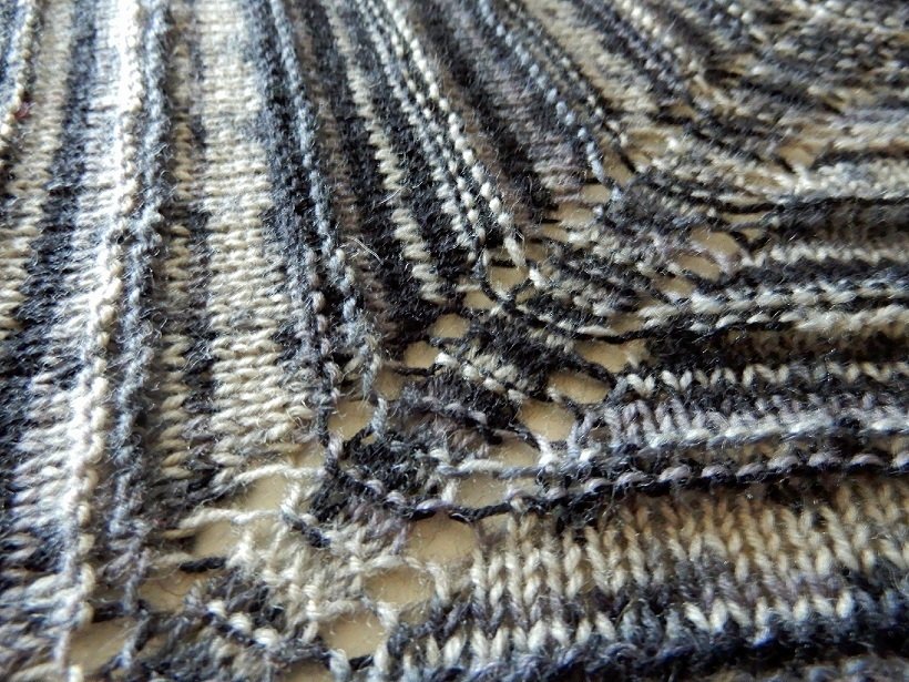 Jazz is a triangle shawl worked from the top to the bottom. It starts off with a garter tab and then increases are worked in every second row. The fringe is an extra. You can make it or leave it off. Although the pattern is written for fingering yarn, you can use any other yarn as well.