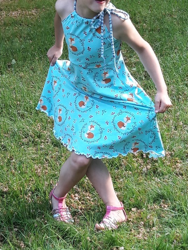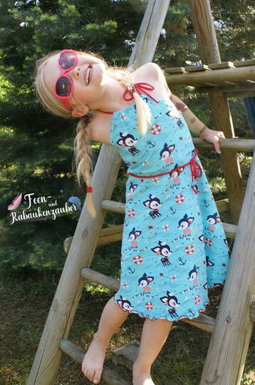 Summerspeedy ist ein tolles luftiges Sommerkleidchen für die kleinen Damen. Da Speedy aus Jersey genäht wird, bietet es trotz der körpernahen Form ausreichend Bewegungsfreiheit und engt nicht ein. Wie der Name schon sagt, ist Speedy ein wirklich fix genähtes Teilchen. Und der Clou an der ganzen Sache → es gibt weder vorn noch hinten, so dass sich auch die kleinen Damen problemlos alleine anziehen können ;-)