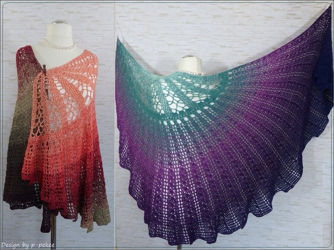"Hyalma" (shell) is something special, a semi-circular scarf in the shape of a shell. The scarf looks extravagant and goes well with a dress or on the beach.
