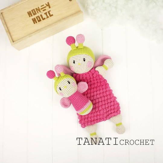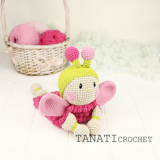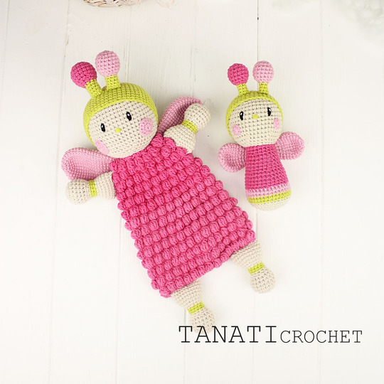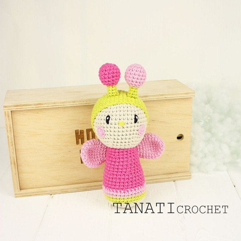 Rattle BUTTERFLY – size 17 cm (6.5 in), if using sport weight yarn (Sport (12 wpi), 2: Fine).