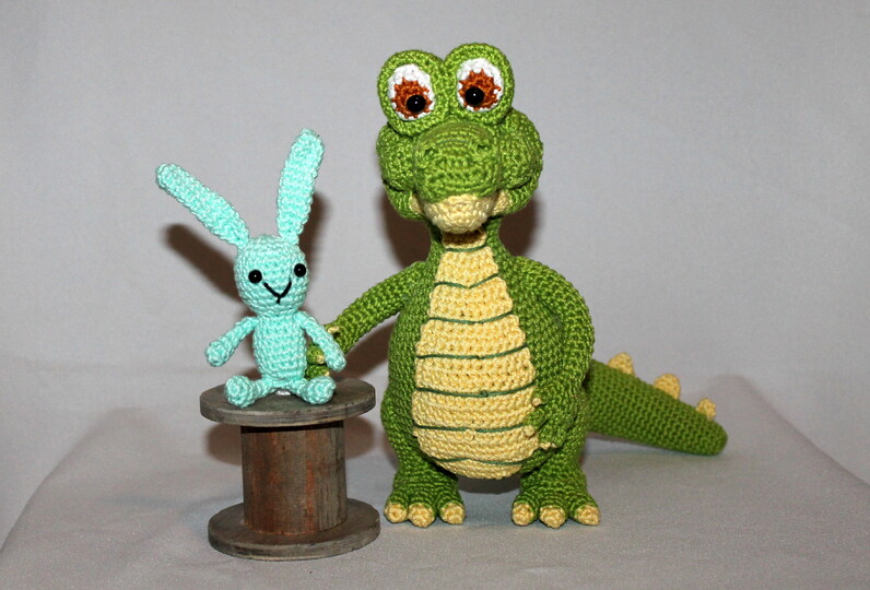 The crochet crocodile will be about 20cm/ 8 inches tall.