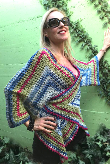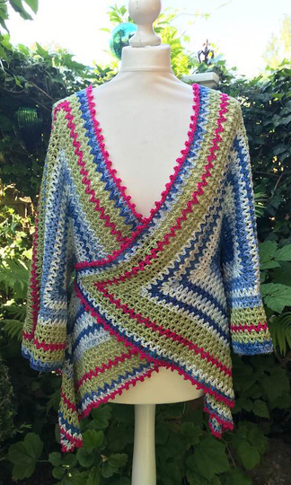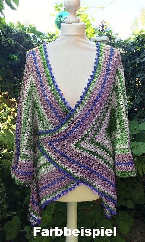 Wickelbluse "Goldstück" wiegt fertig 540gr und passt für die Größe 42-54 super..kann auber auch genauso kleiner ( etwas weniger Wolle ) und größer ( mehr Wolle ) gehäkelt werden