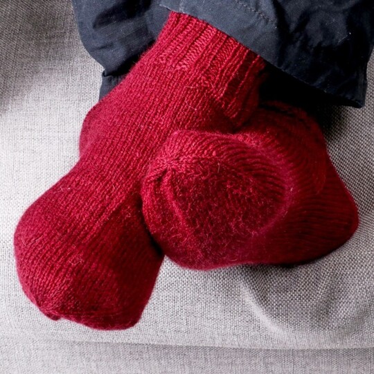 Knit a pair of wonderful socks for men for yourself or one you care about. The foot is knitted in stockinette stitch while the leg is knitted in a simple rib pattern.