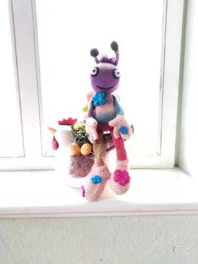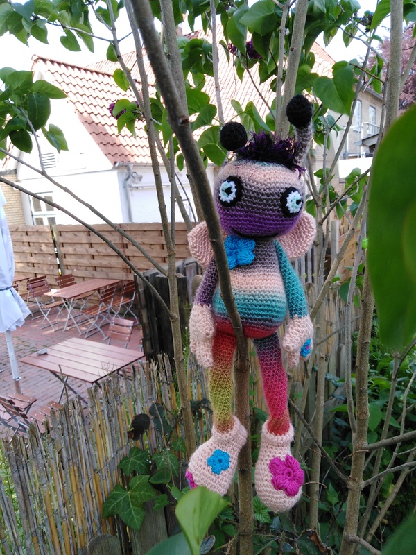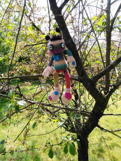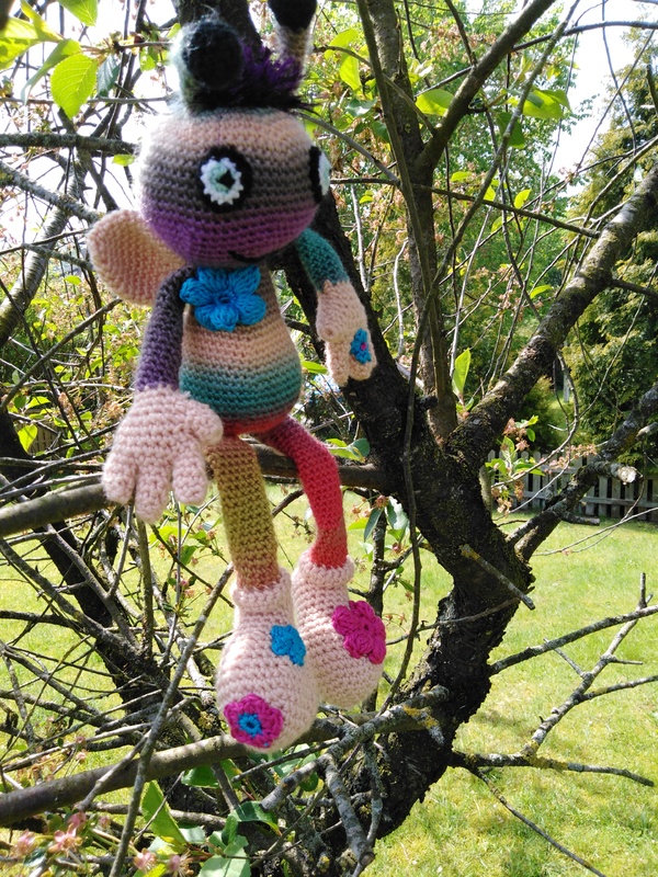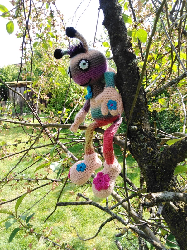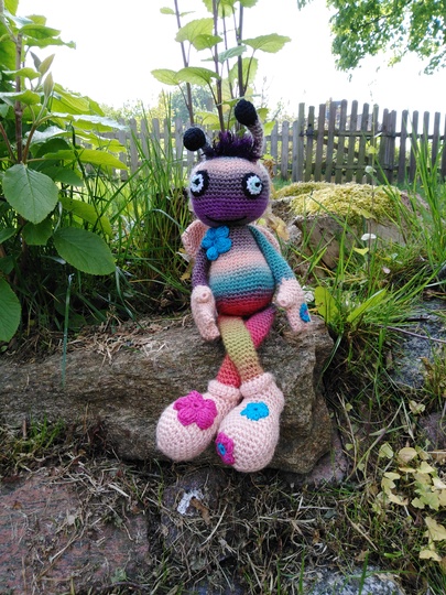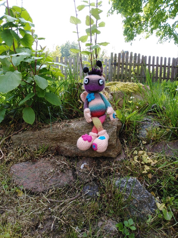 Das Amigurumi wird nur mit festen Maschen in Spiralrunden gehäkelt. Die Blumen sind seperat gehäkelt