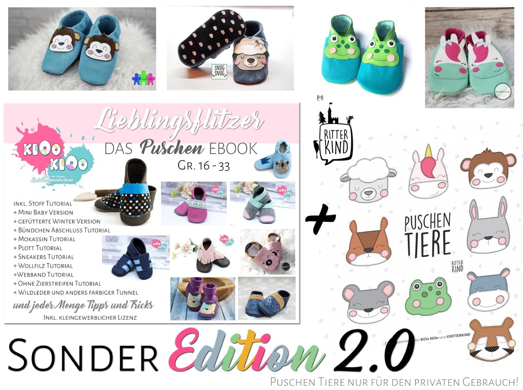 „Lieblingsflitzer das Puschen eBook“ als Sonder Edition 2.0 mit 9 zuckersüßen Puschen Tieren zum Applizieren. Entworfen und designt von (eine Kooperation von kiOo kiOo und Ritterkind)